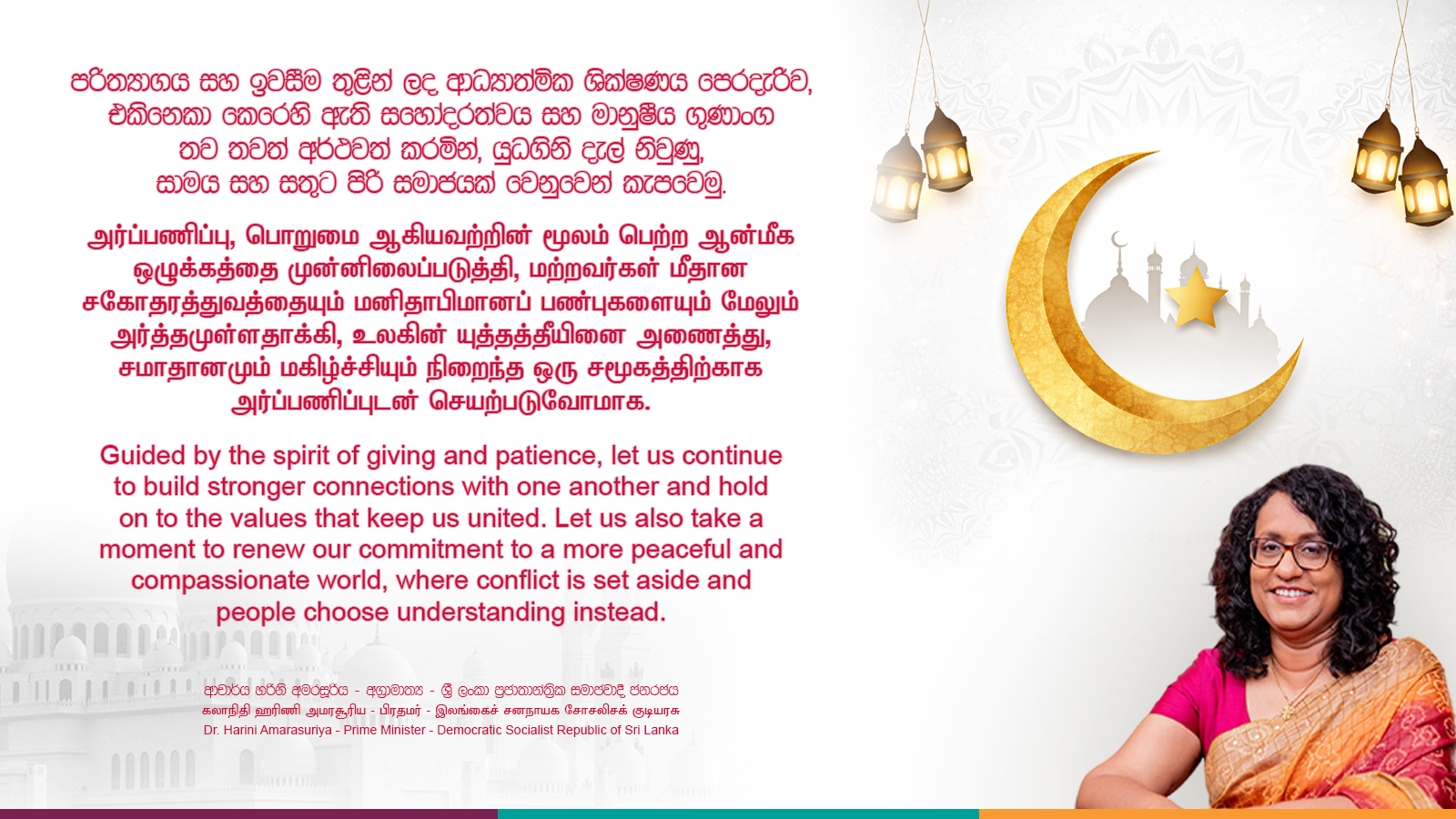 The diversity within our country is a strength. The message of brotherhood and coexistence taught by Ramadan inspires us, as Sri Lankans, to stand united under one flag. Sustainable peace and prosperity in our country depend on strengthening religious and cultural bonds while fostering mutual trust and respect among all communities.