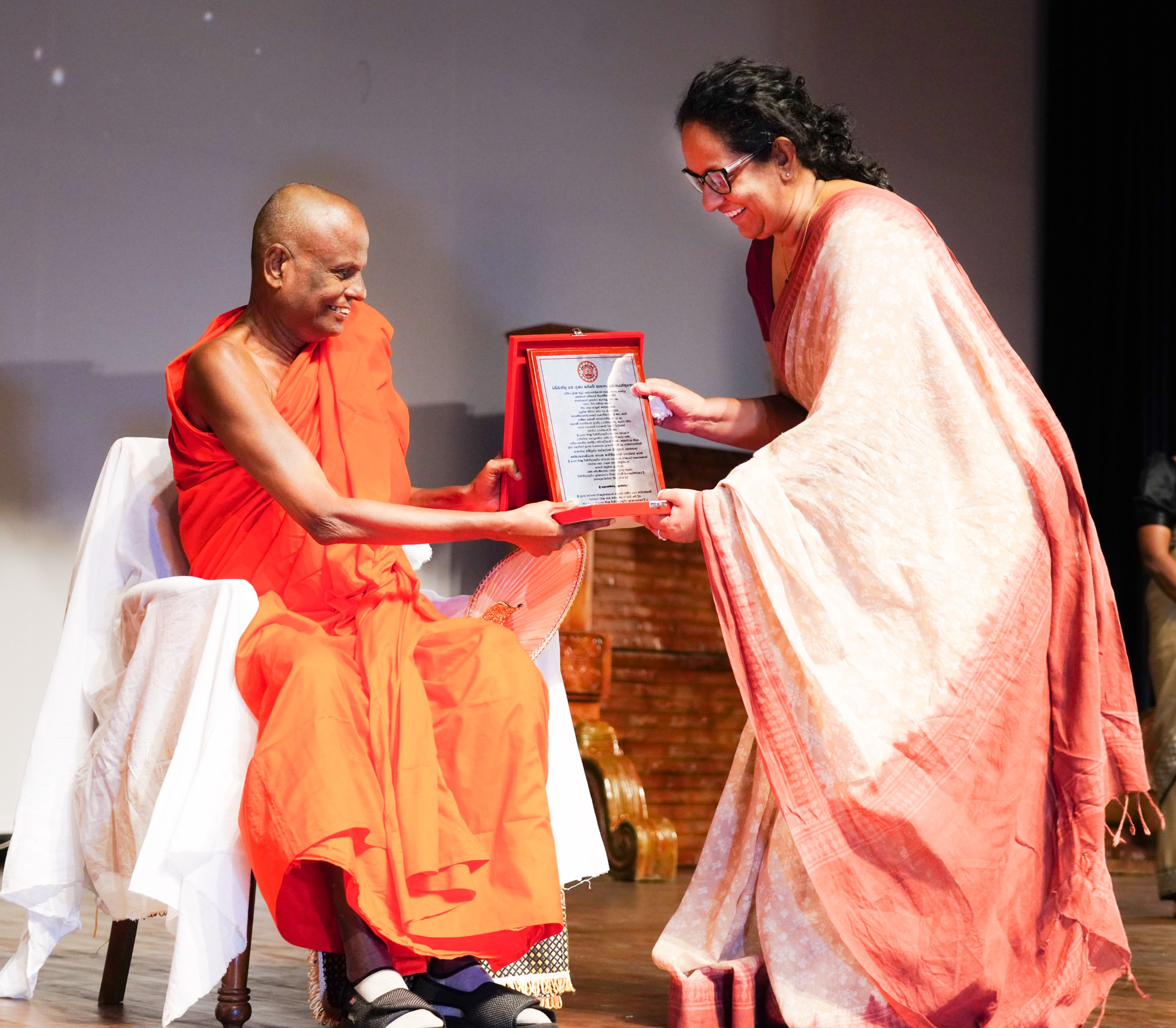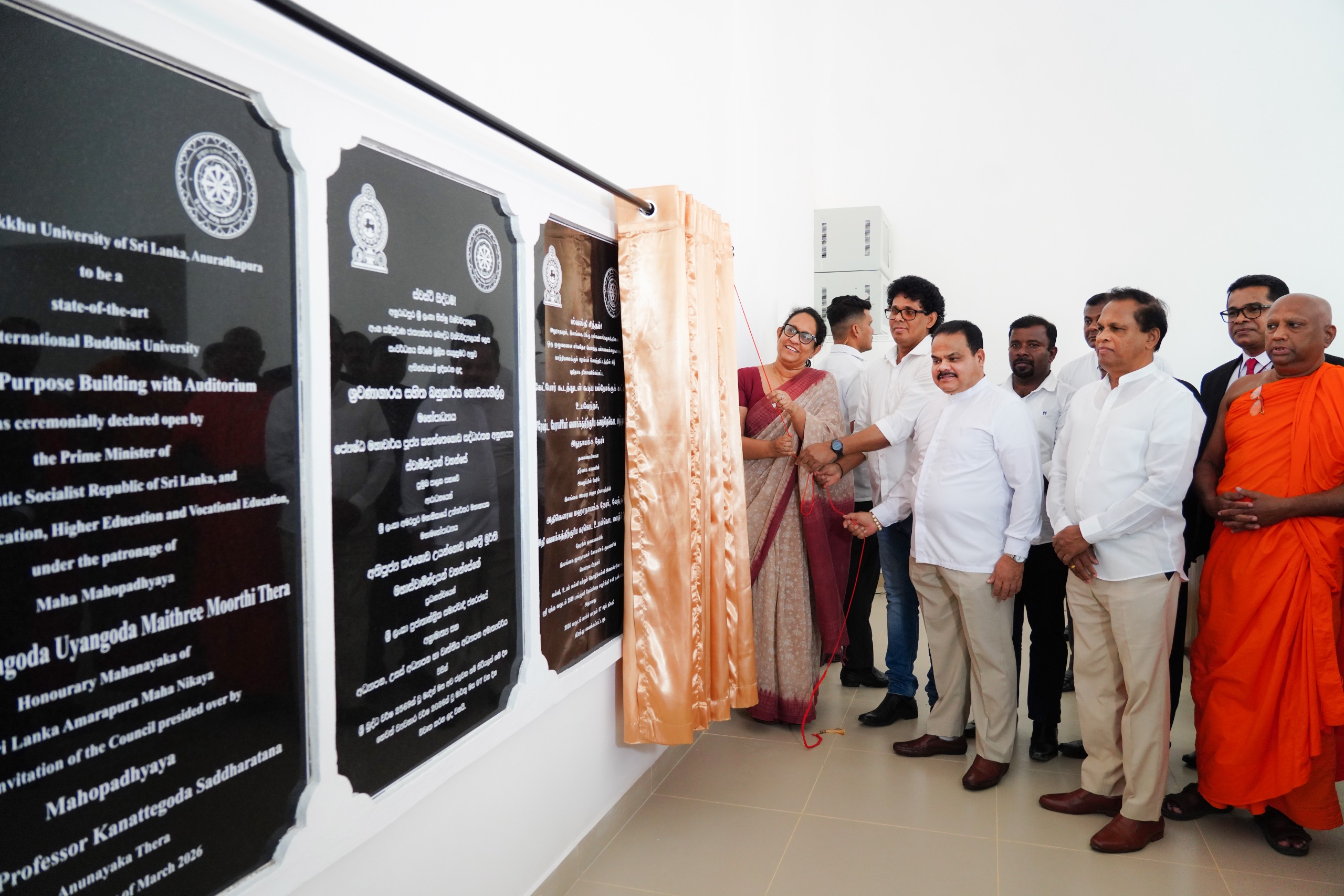 Marking the opening of the new multi-purpose auditorium complex, the commemorative plaque was unveiled by Prime Minister Dr. Harini Amarasuriya. On this occasion, tribute awards were also presented in appreciation of the services rendered by Atamasthanadhipathi Ven. Dr. Pallegama Hemarathana Nayaka Thero, Senior Professor C. M. Madduma Bandara, and State Counsel Mahinda Ralapanawa.