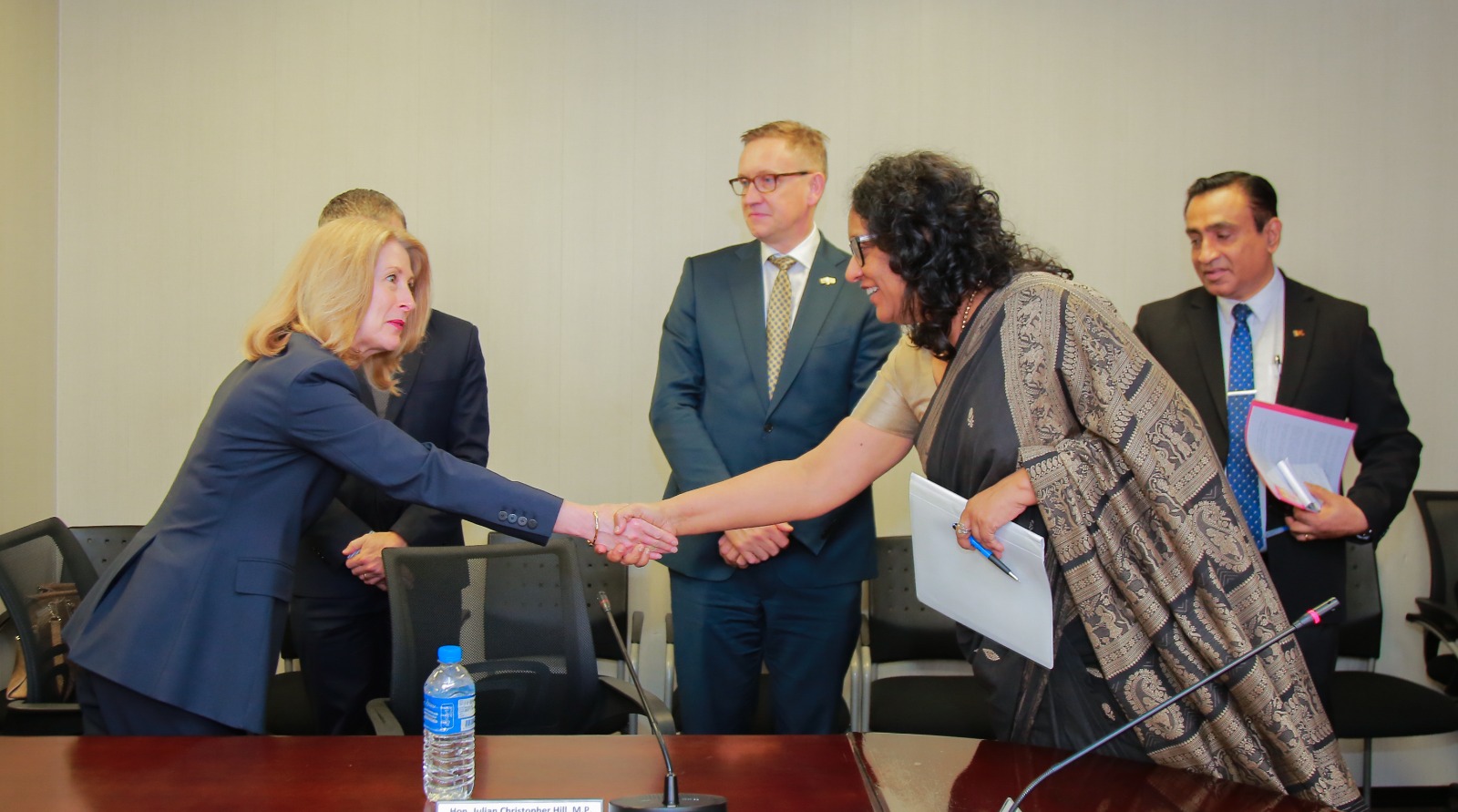 The meeting was attended by the Australian High Commissioner to Sri Lanka H.E. Matthew Duckworth, First Assistant Secretary Ms. Karen Ann Sandercock, Chief of Staff Mr. Cameron Geoffrey Green, Deputy High Commissioner of the Australian High Commission in Colombo Ms. Ruth Baird and representing Sri Lanka Secretary to the Ministry of Education, Higher Education and Vocational Education Mr. Nalaka Kaluwewe, Additional Secretary (Development) Higher Education Sector Ms. Apsara Caldera, and officials from the Ministry of Education and the Ministry of foreign affairs.